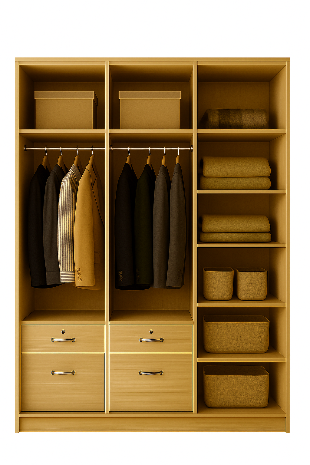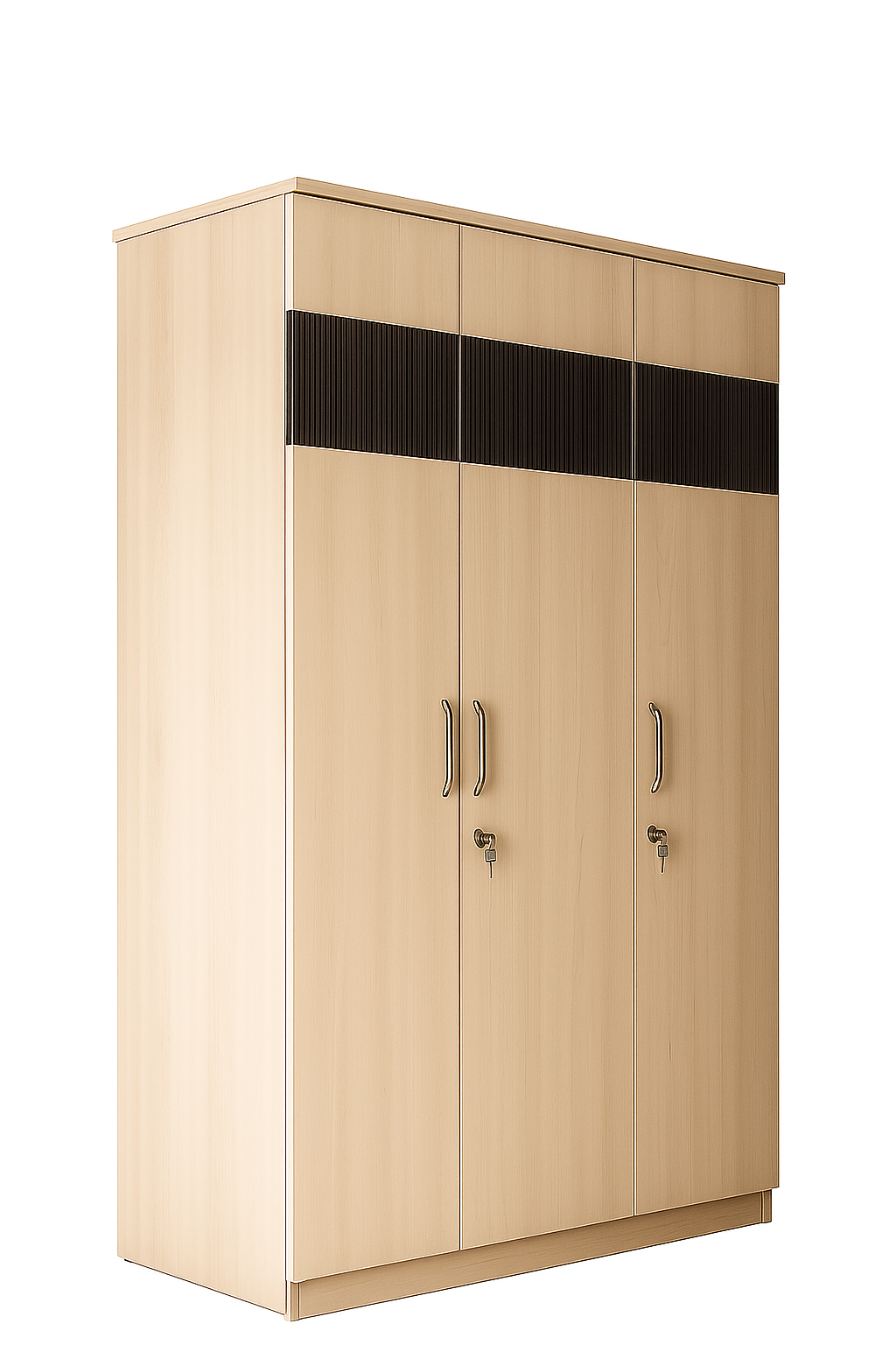Elegant Light Oak Finish 3-Door Wardrobe – 4×6 Ft
